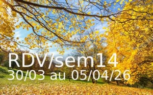 Rdv lund 30 au dim 05/04/26 #sem14